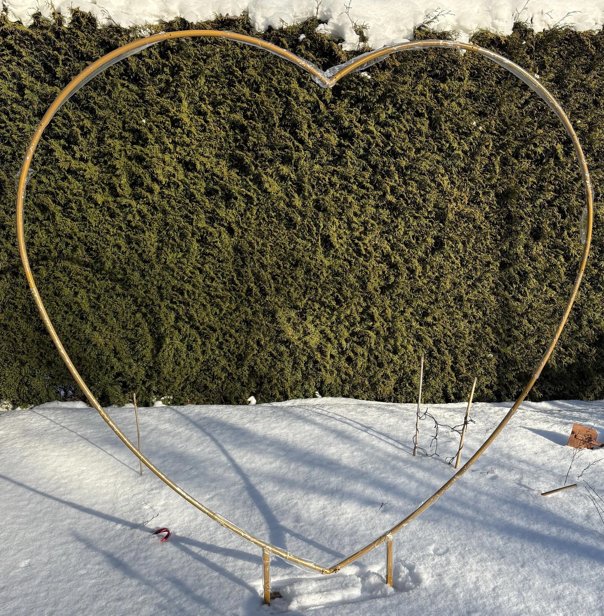 Golden, gently used heart-shaped frame, approx. 2 x 2 m.