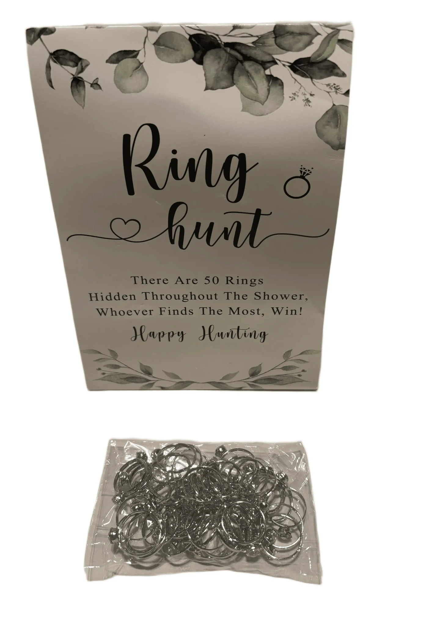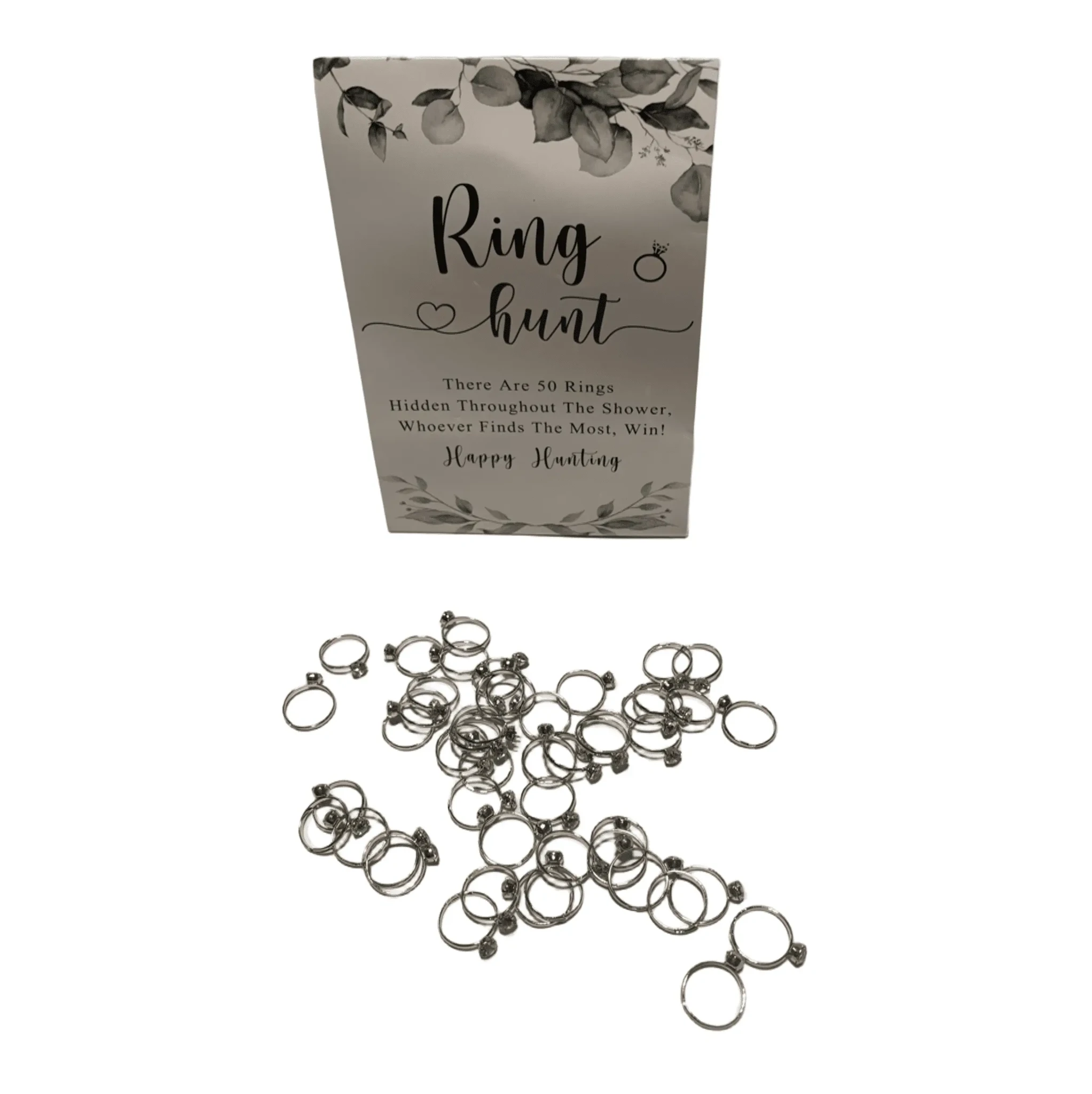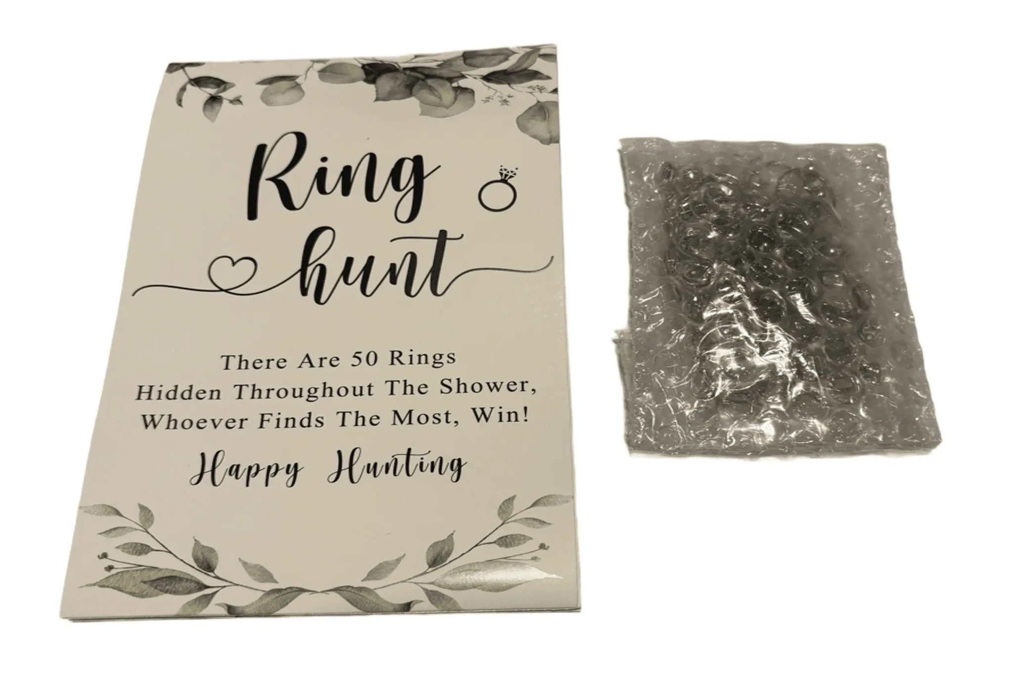 tekstiga: "Ring hunt. There are 50 rings hidden throughout the shower, whoever finds the most, win! Happy hunting"